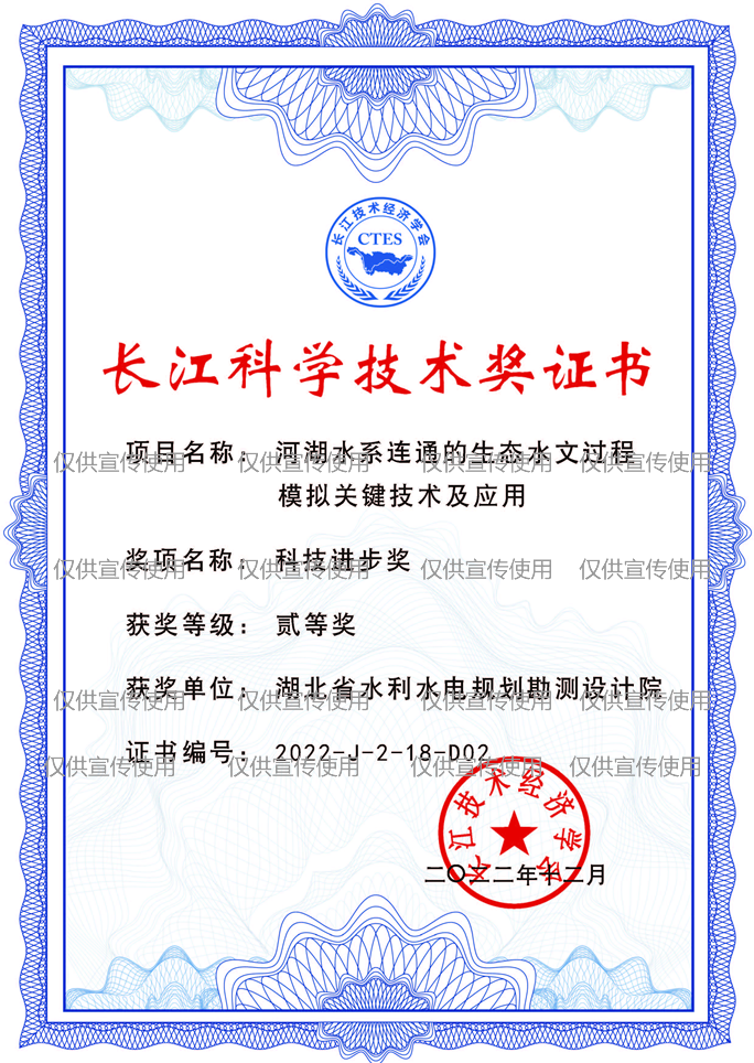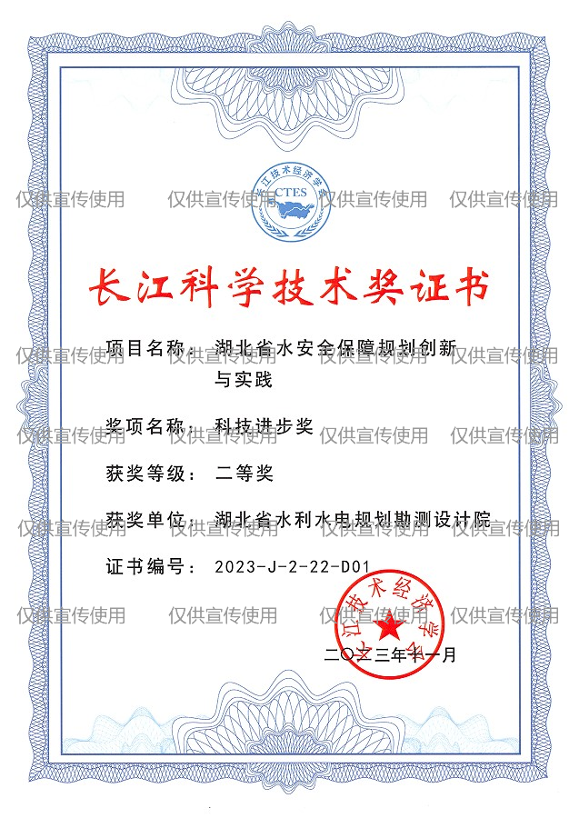 • 证书名称:湖北省水安全保障规划创新与实践 获得时间:2023年11月