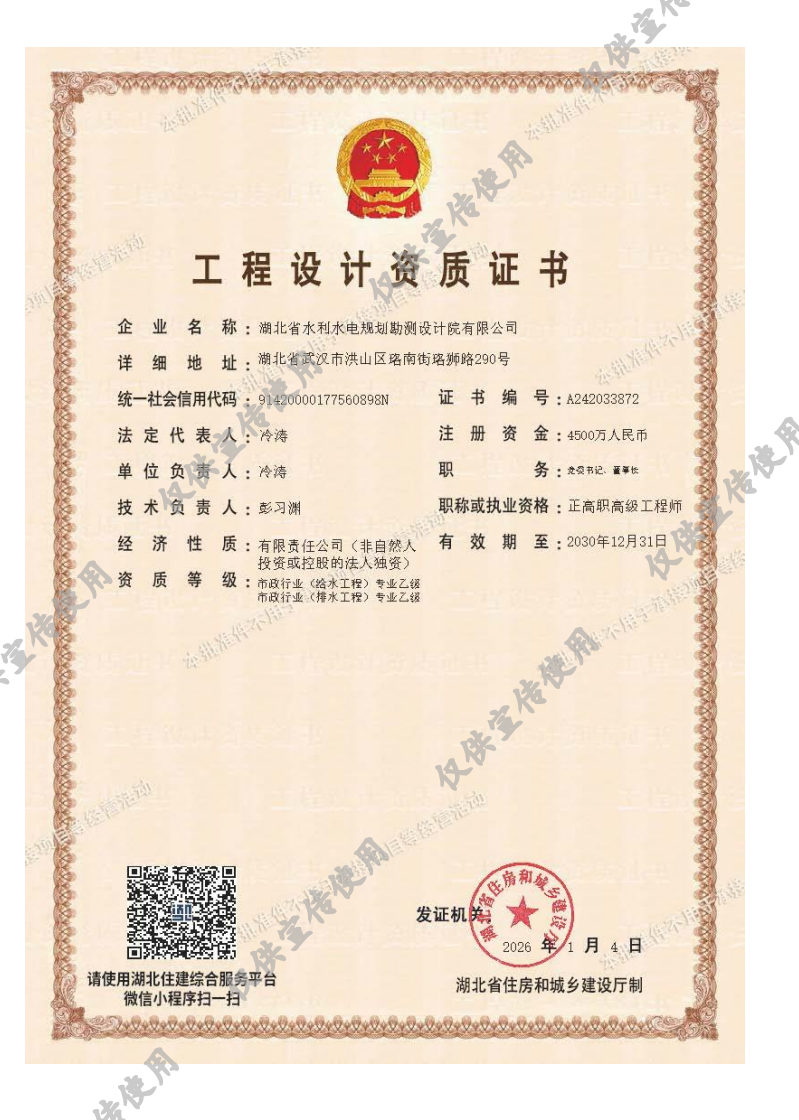 • 市政行业(给水工程)专业乙级/市政行业(排水工程)专业乙级
