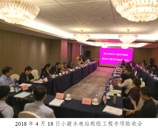 会议听取了汉江水电开发有限责任公司关于枢纽工程建设及初期运行情况的汇报,湖北省院关于工程设计情况的汇报,水利部水利工程建设质量与安全监督总站长江流域分站关于工程质量监督情况的汇报,中国水利水电建设工程咨询有限公司关于枢纽工程竣工安全鉴定主要结论的汇报,以及验收专家组关于枢纽工程专项验收专家组意见的汇报。与会各位委员、代表就枢纽工程专项验收条件和存在的问题进行了研究和讨论,会议形成了《湖北堵河小漩水电站枢纽工程专项验收鉴定书》。验收委员会同意湖北堵河小漩水电站通过枢纽工程专项验收。